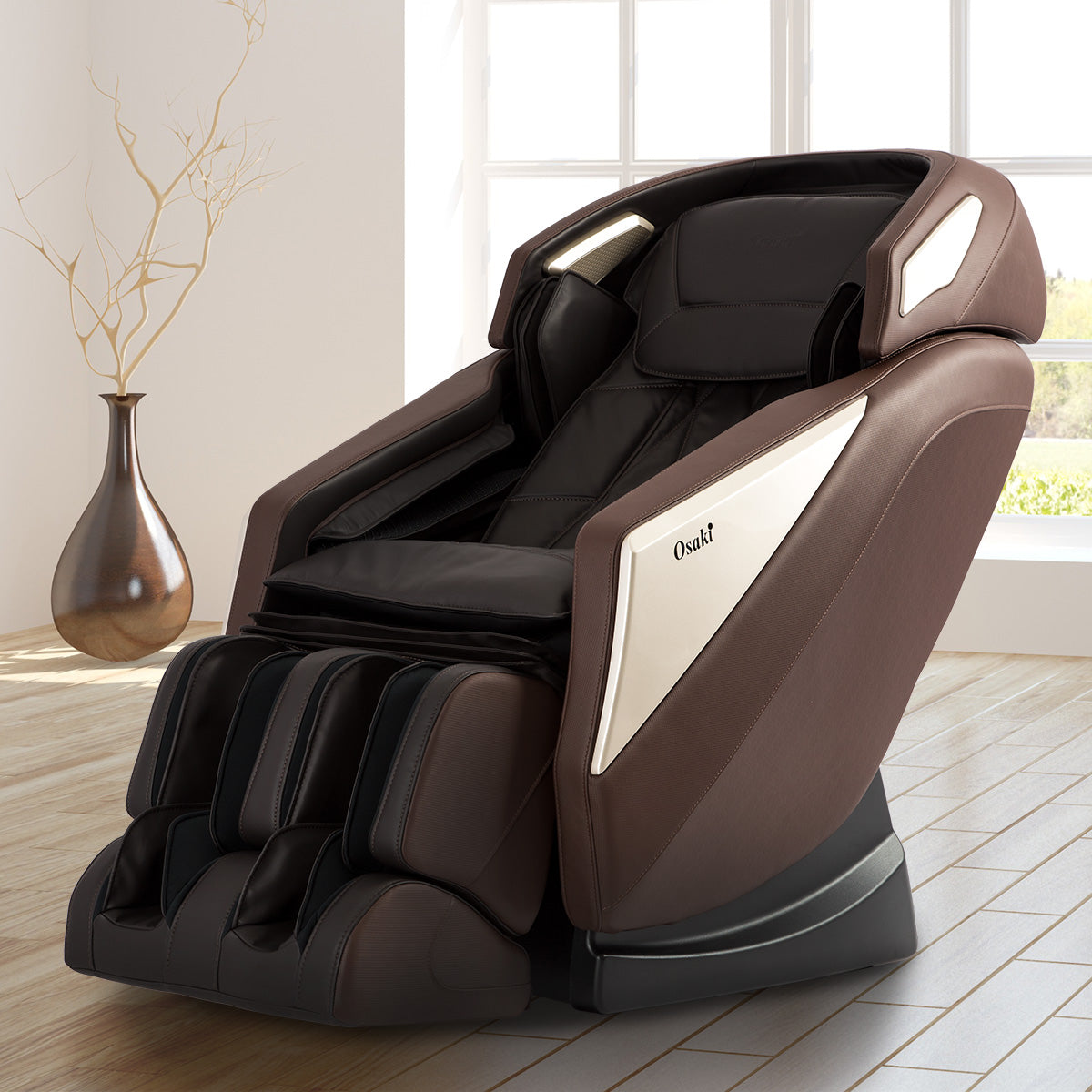 The Osaki OS-Pro Omni is equipped with 30 airbags located at the shoulders, arms and hands, calves, and feet. The Next Generation airbags are streamlined to reduce the number of working parts while increasing the surface area over previous designs.